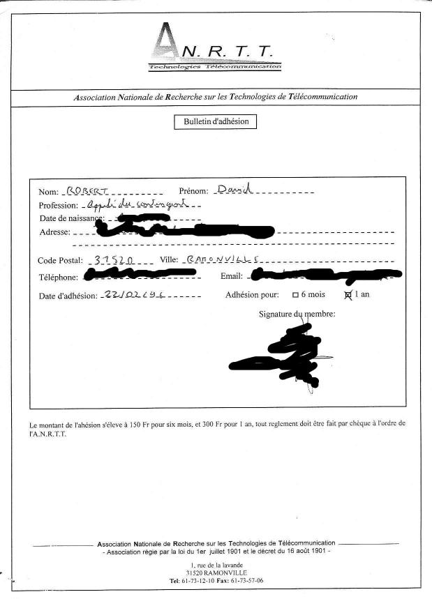 été remplis. En tout cas le bulletin d'adhésion du